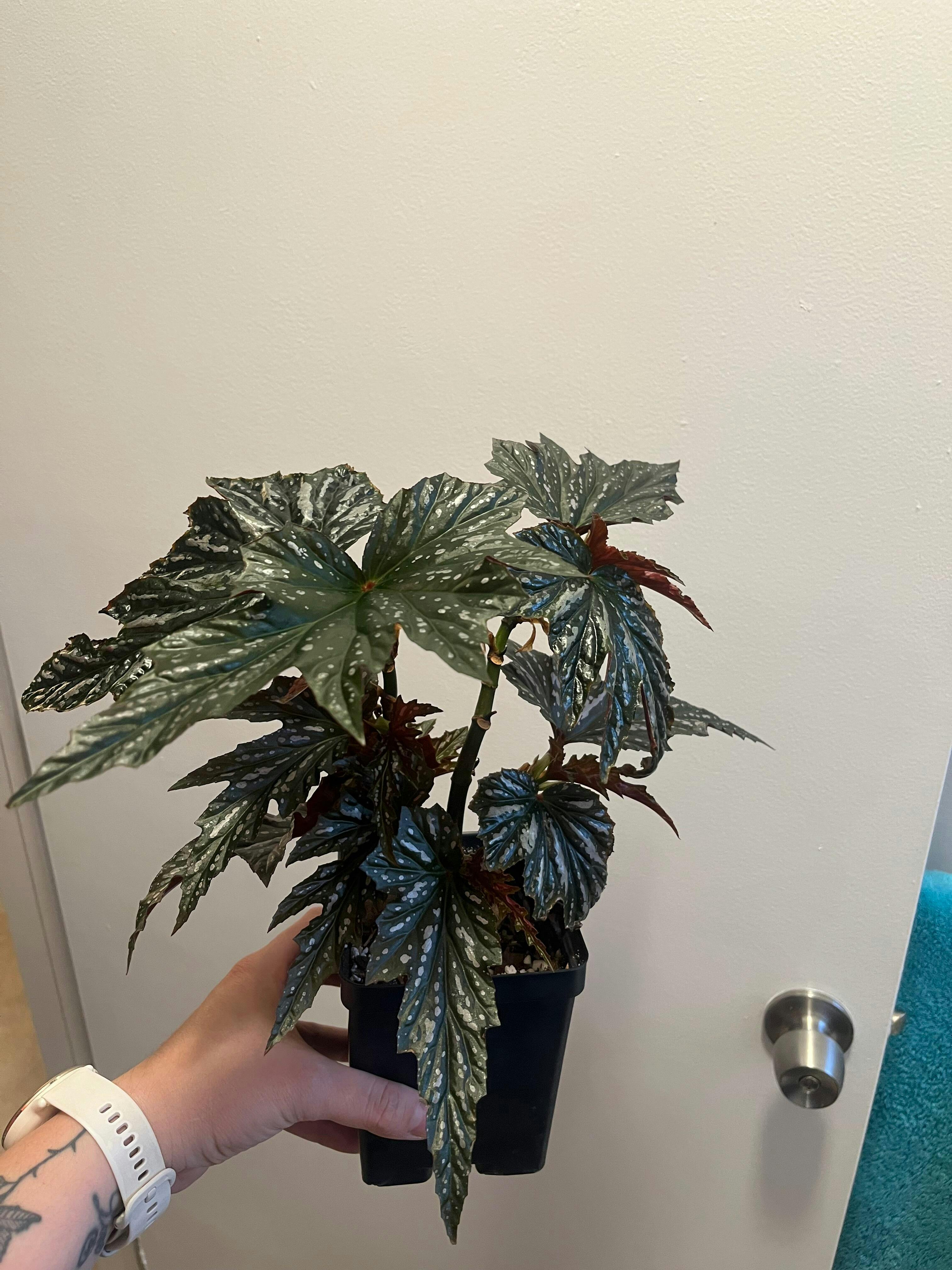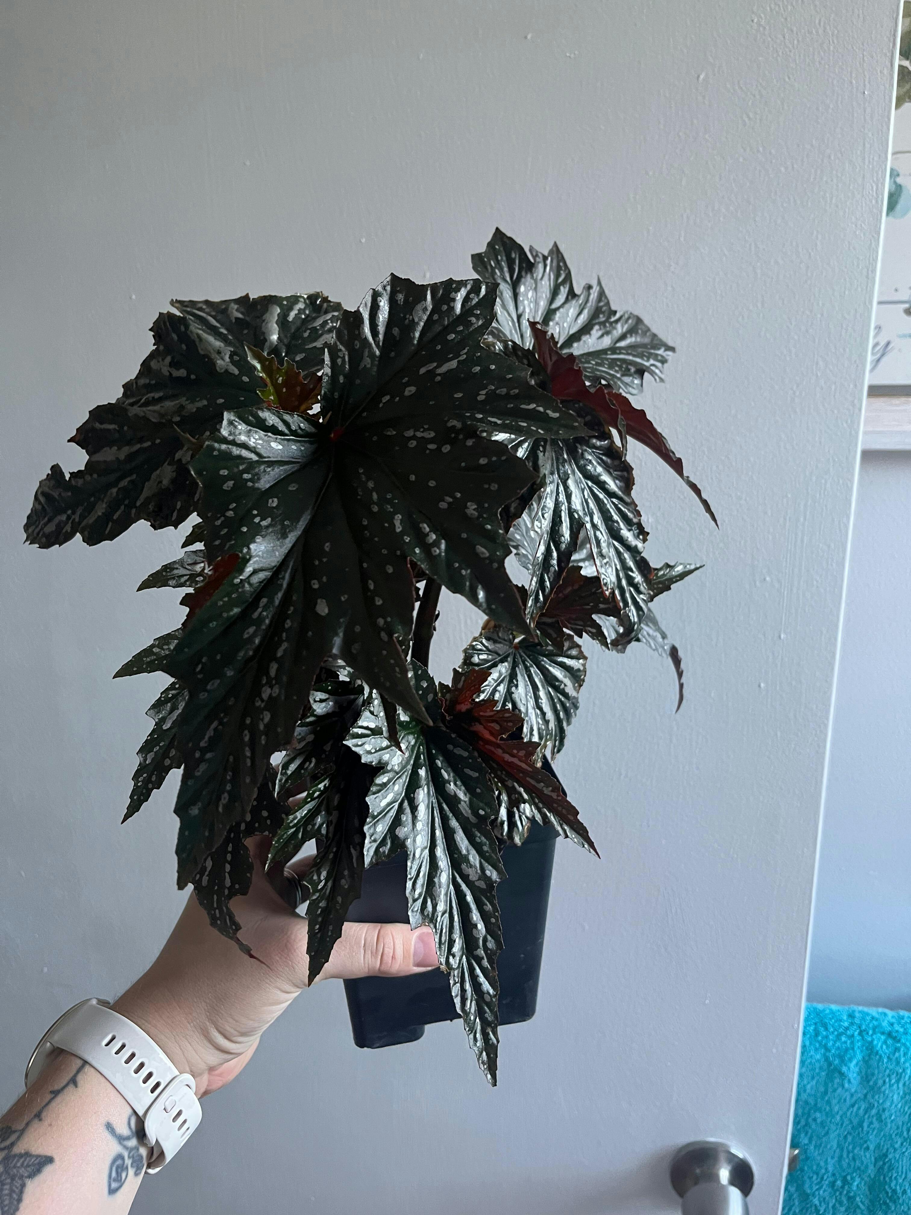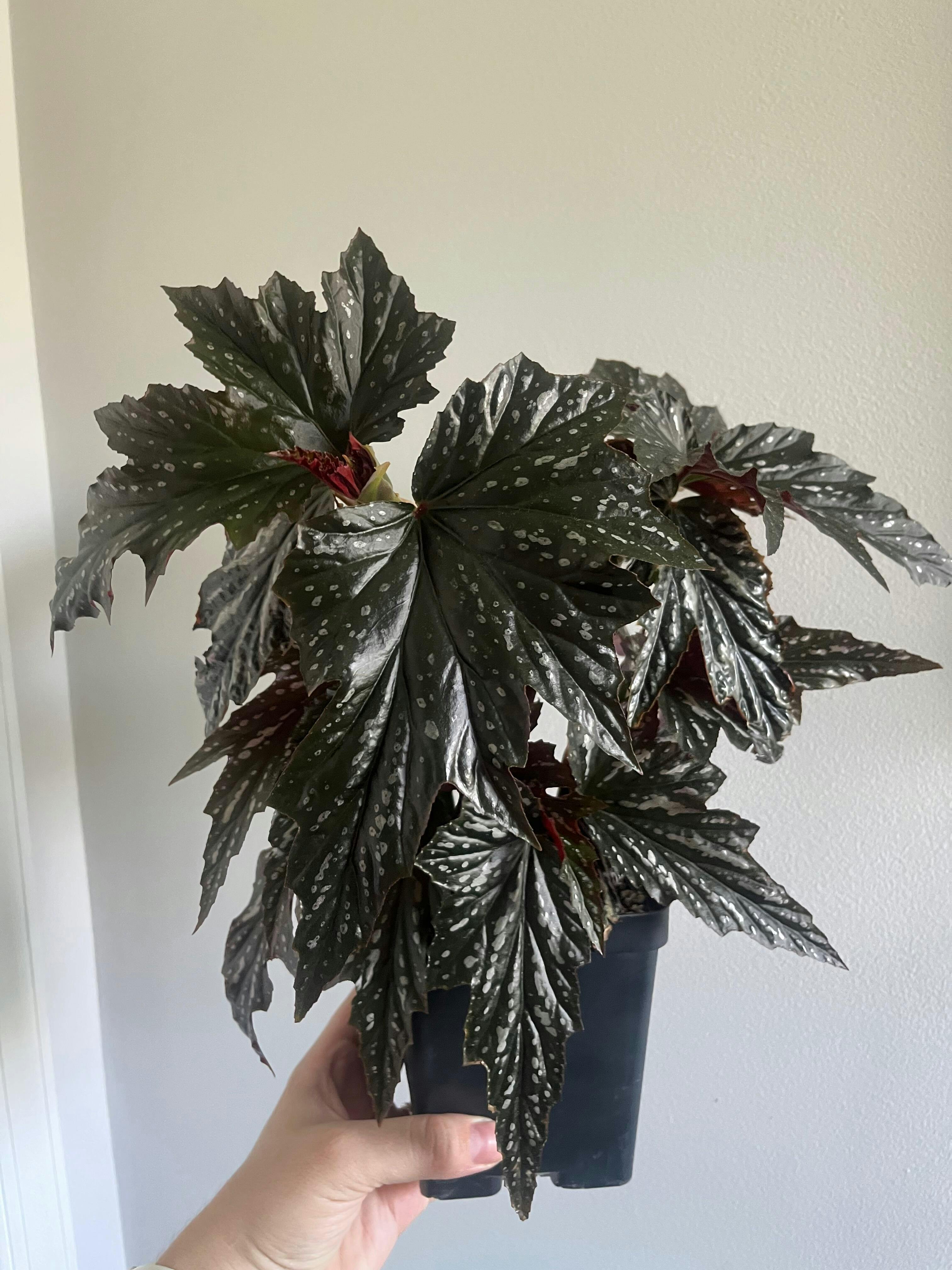 Begonia 'Lady Vanderwilt' is an outstanding cane type begonia.The foliage is large, glossy and covered in patterned spotting.