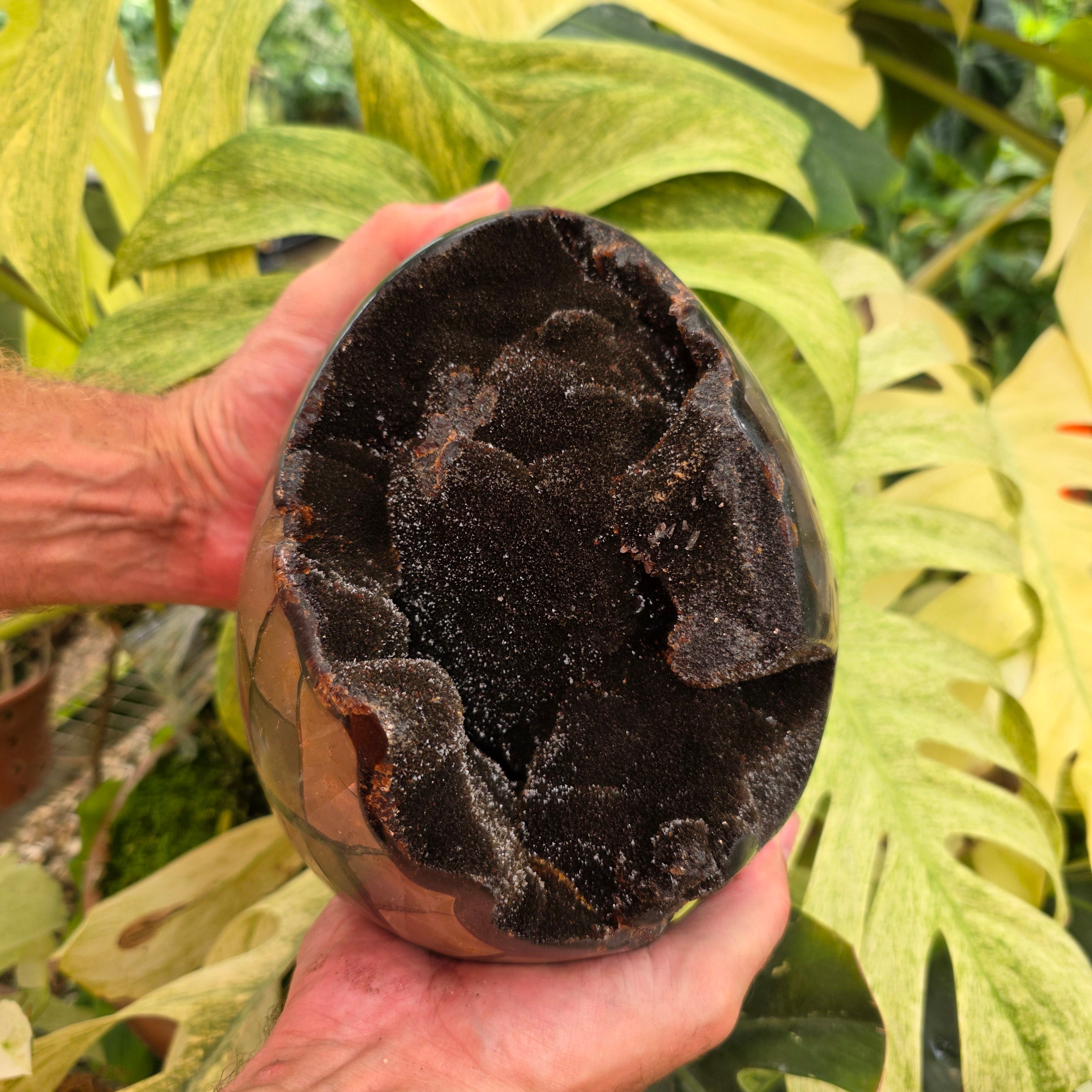 Septarian connects you with the energies of the fire element. It may help you learn the value and importance self-control. Septarian stabilizes the emotional body and it may aid in transformation (physical, emotional, and spiritual). ***stand not included.