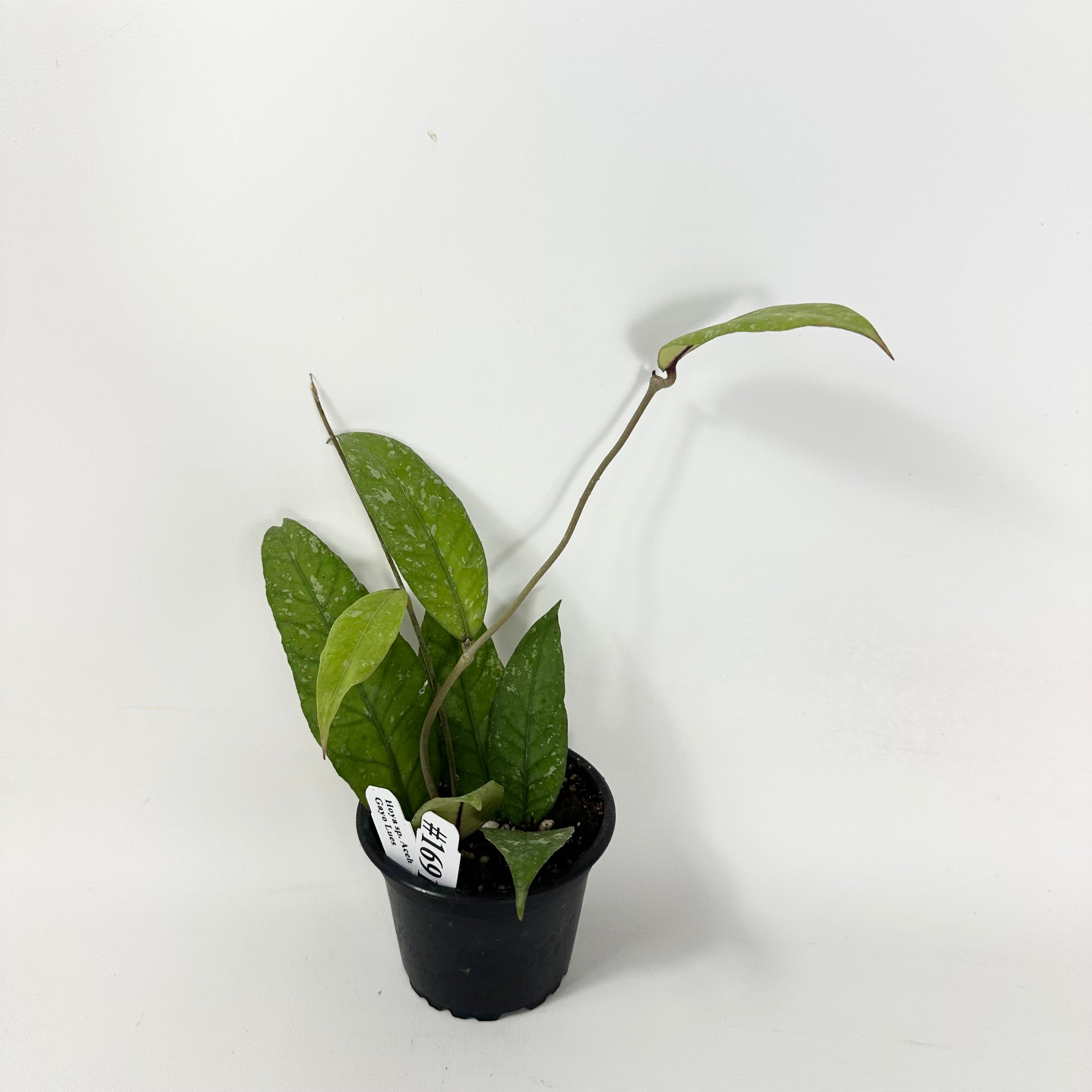 Hoya sp. Aceh Gayo Lues grows in the Gayo Lues Forest, within the Aceh province, of Indonesia. Its striking leaves have a pronounced veining and heavy splash-like variegation.